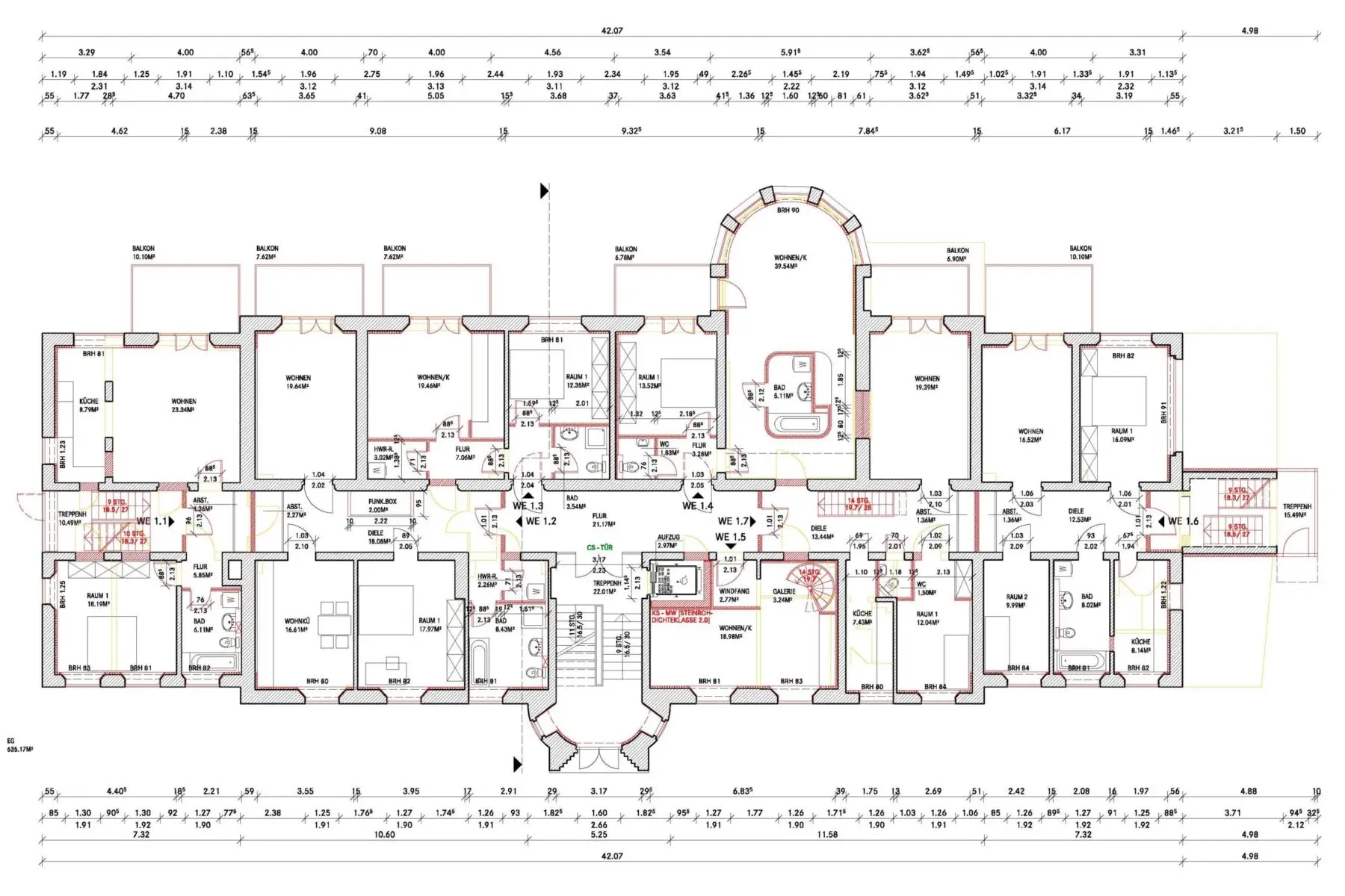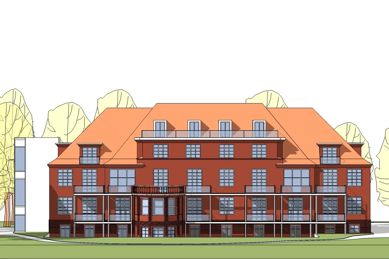 In der Entwurfs- und Genehmigungsplanung wurden die Gebäude zu Wohngebäuden umgenutzt.