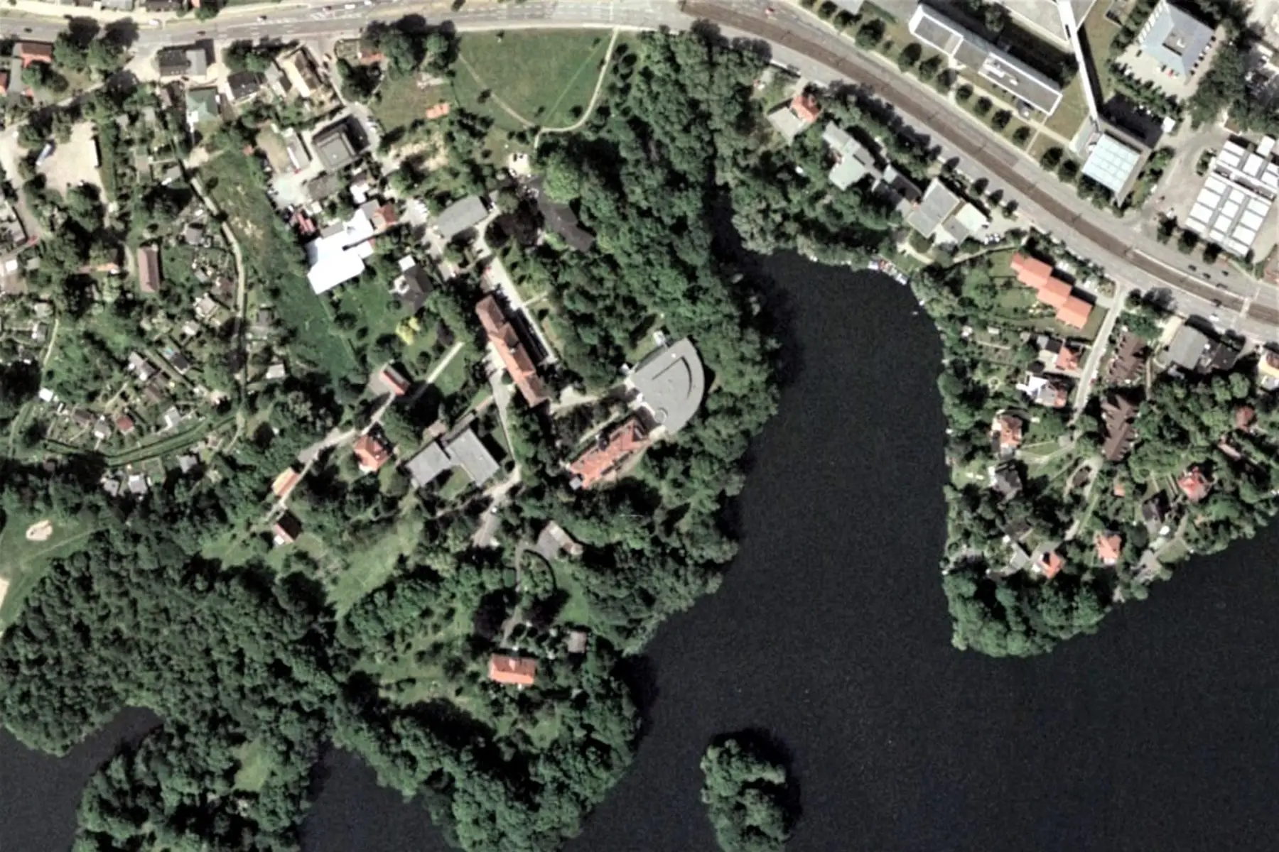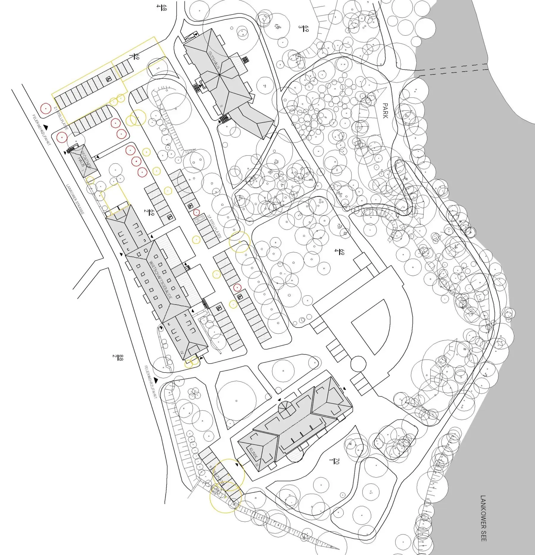 Auf dem ehemals als Park gestalteten Grundstück befindet sich, direkt auf der Landzunge am Lankower See, die ehemalige Lungenklinik.