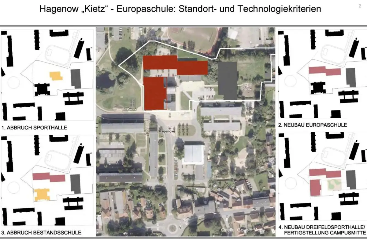 Der Standort des Bauvorhabens befindet sich im Hagenower Plattenbaugebiet „Kietz“, wo im Ergebnis der baulichen Entwicklung ein Bildungscampus entstehen soll. Durch die Stadt Hagenow wurde für diese Maßnahme ein Architektenwettbewerb ausgelobt, für den Neubau einer Grund- und Regionalschule, in Verbindung mit einer 3-Feld-Sporthalle.