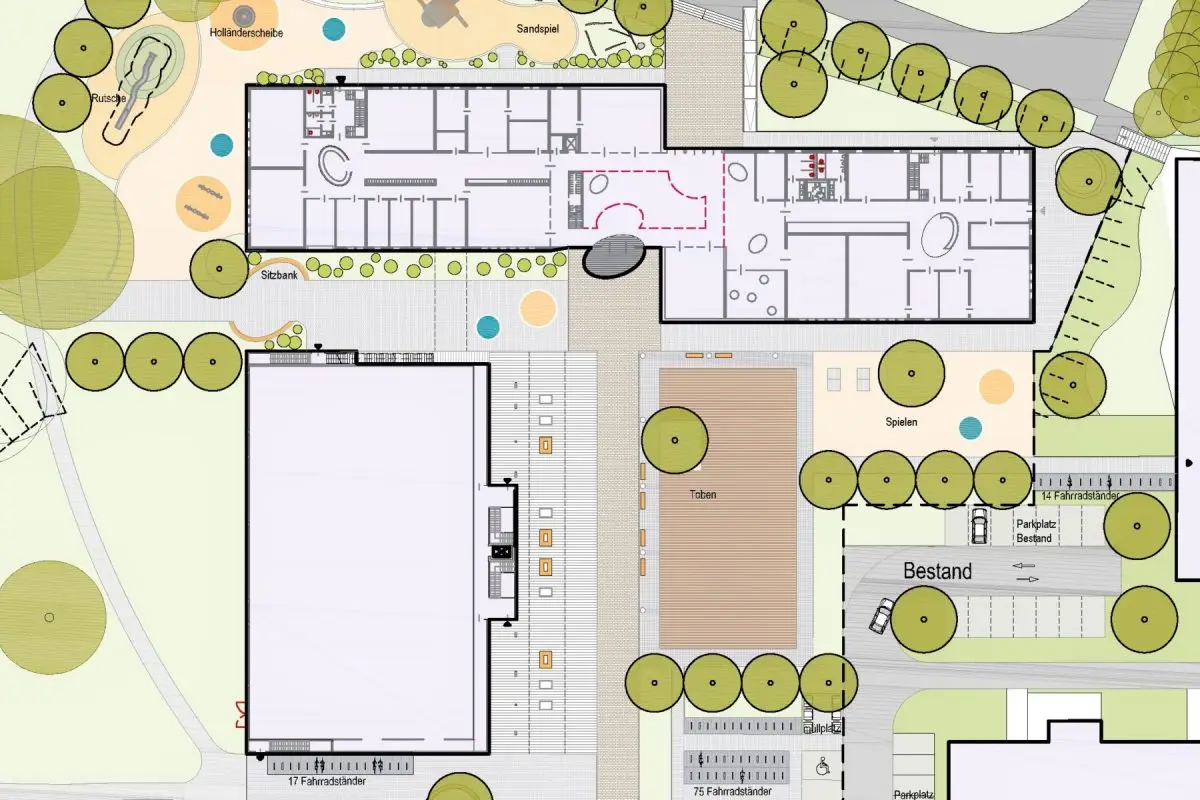 Seit Januar 2022 liegt für die Sporthalle eine Baugenehmigung vor.