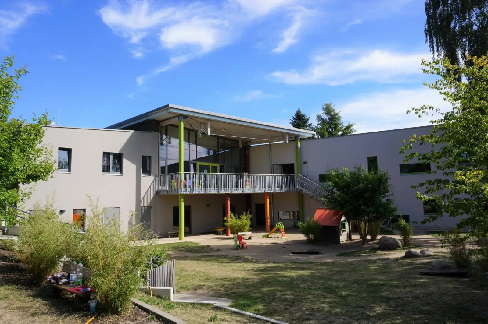 Die Grundstücksvorbereitung mit dem Rückbau der alten Kita wurde im Dezember 2013 abgeschlossen. Der Baubeginn der neuen Kita fand am 24.02.2014 statt. Das Richtfest wurde am 31.07.2014 gefeiert.