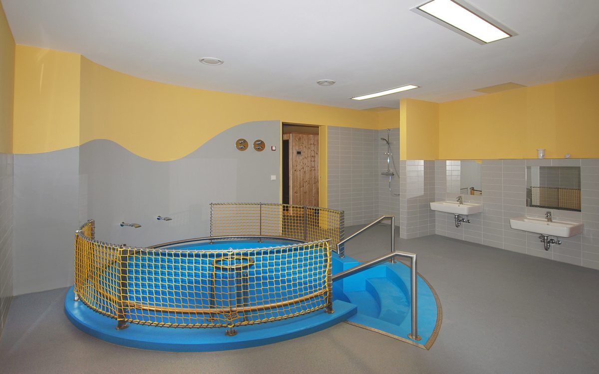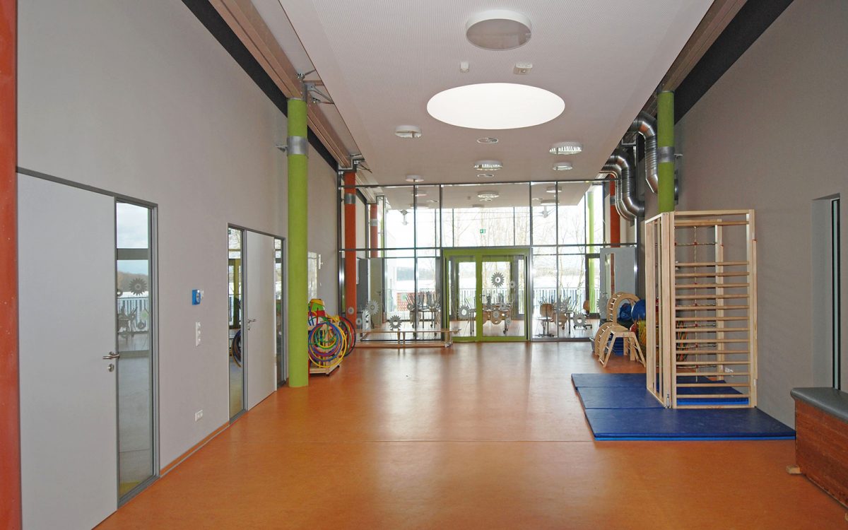 Das Gebäude selbst besteht besteht aus 3 Bauteilen, dem „Kinderhaus“, dem „Wirtschaftshaus“ und dem verbindenden „Gemeinschaftshaus“. Von der Grundrissorientierung erfolgt eine optisches und funktionelles Öffnen zur Seeseite, mit einer Achsenbildung durch das „Gemeinschaftshaus“.