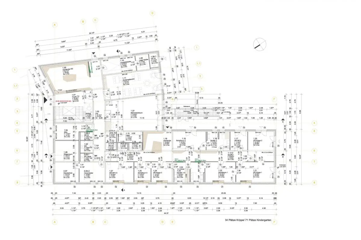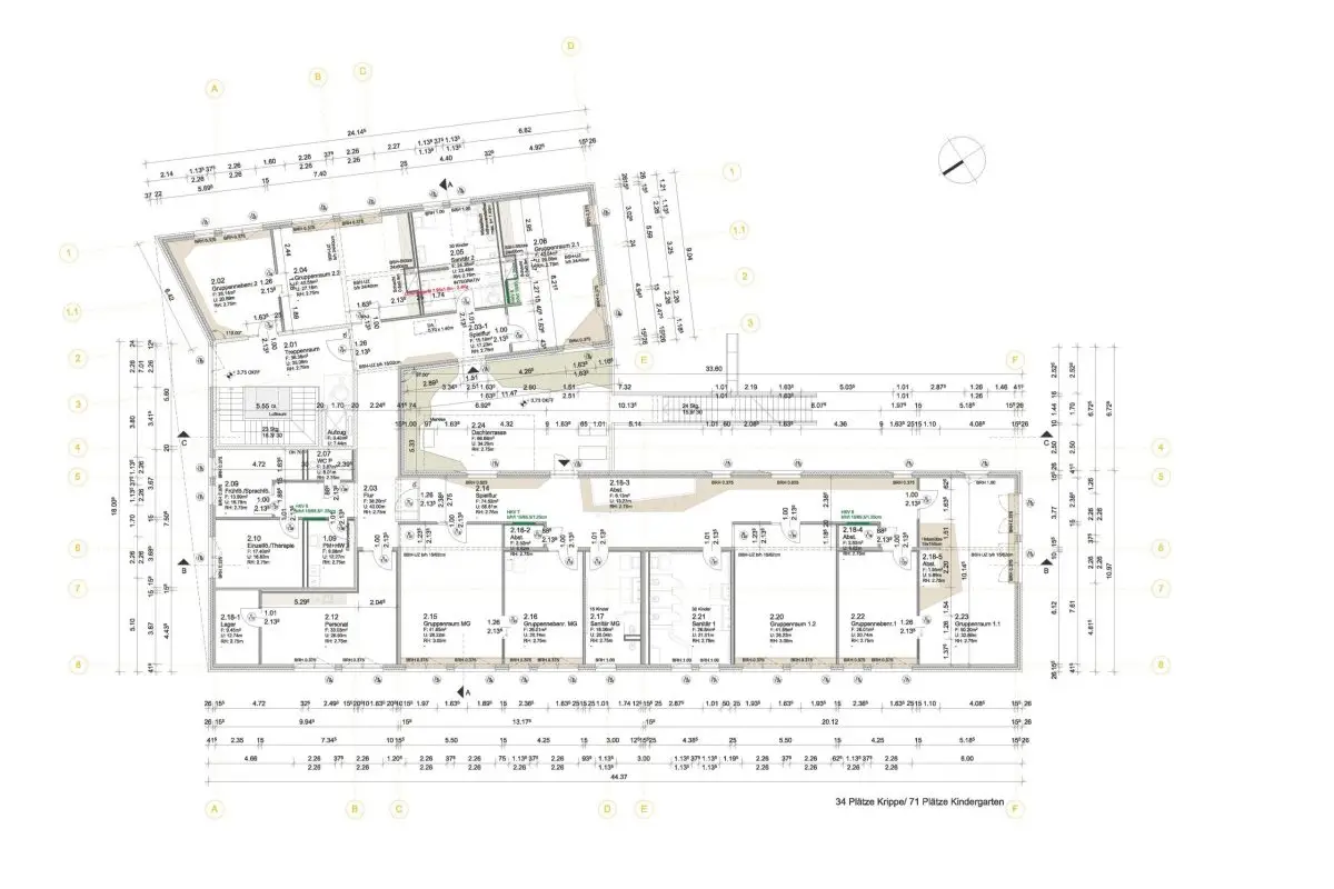 Die geplante Kindertagesstätte ist für die Betreuung von 105 Kindern ausgelegt. Die Zusammenstellung der einzelnen Bereiche stellt sich dabei wie folgt dar:
