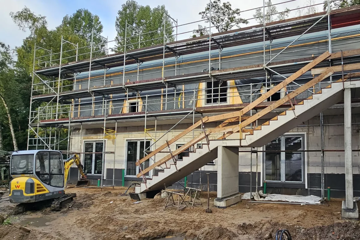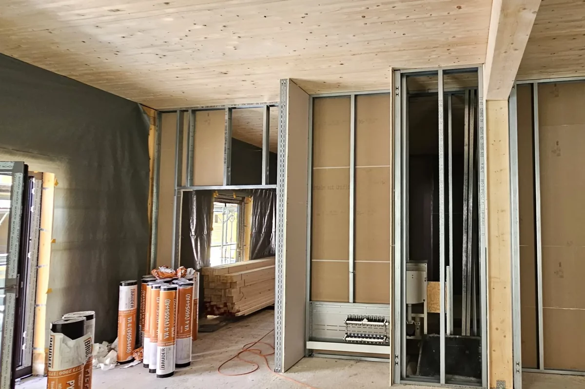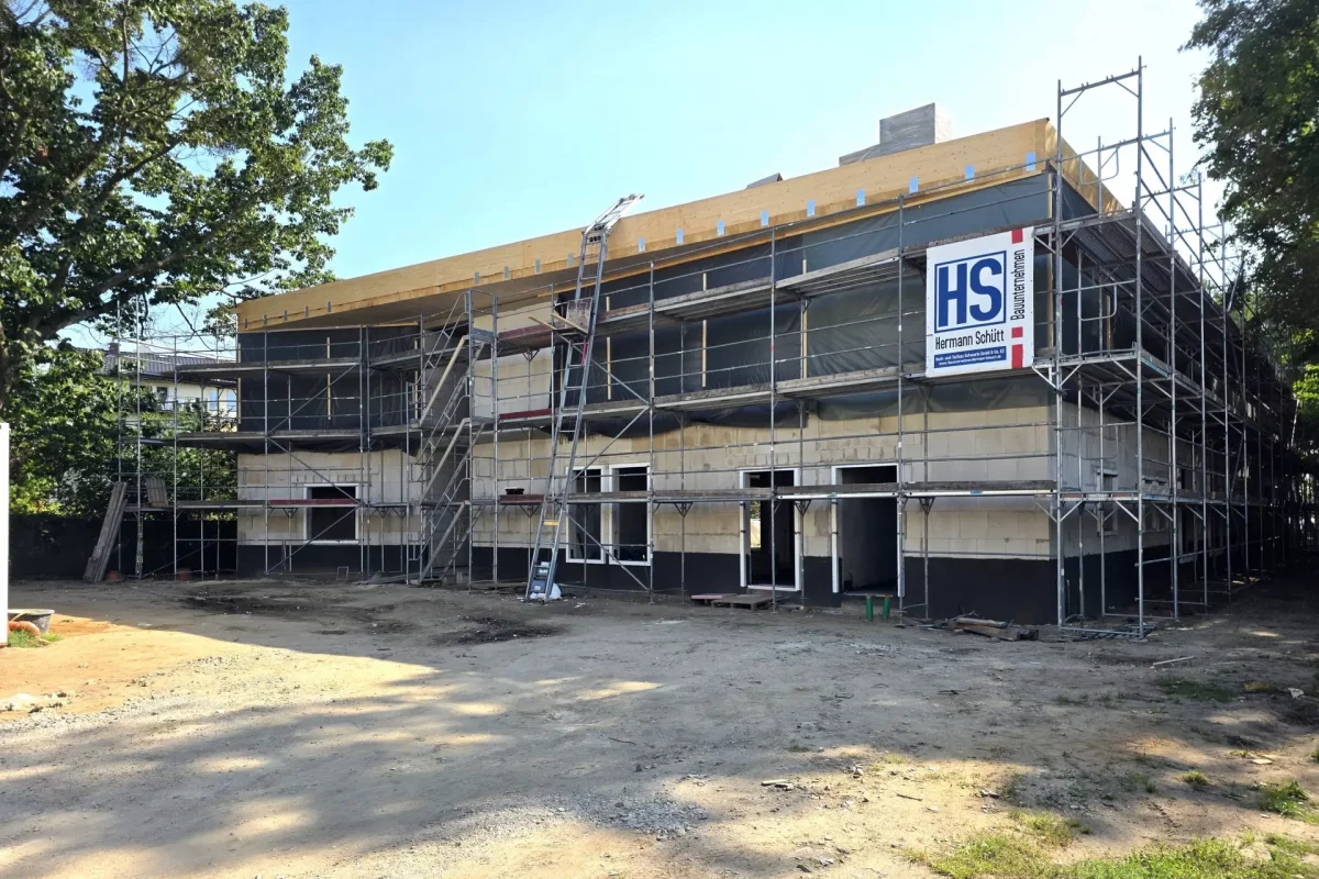 Im Juli 2025 wurden die Erdgeschoss-Massivbauarbeiten beendet, die Holztafel-Montagearbeiten Mitte August 2025.