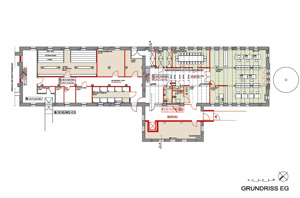 Durch den aktuellen Stand der  Machbarkeitsstudie wird nachvollziehbar aufgezeigt, dass die Eignung des historischen Magazingebäudes für eine Umnutzung zum Stadtarchiv gegeben ist.