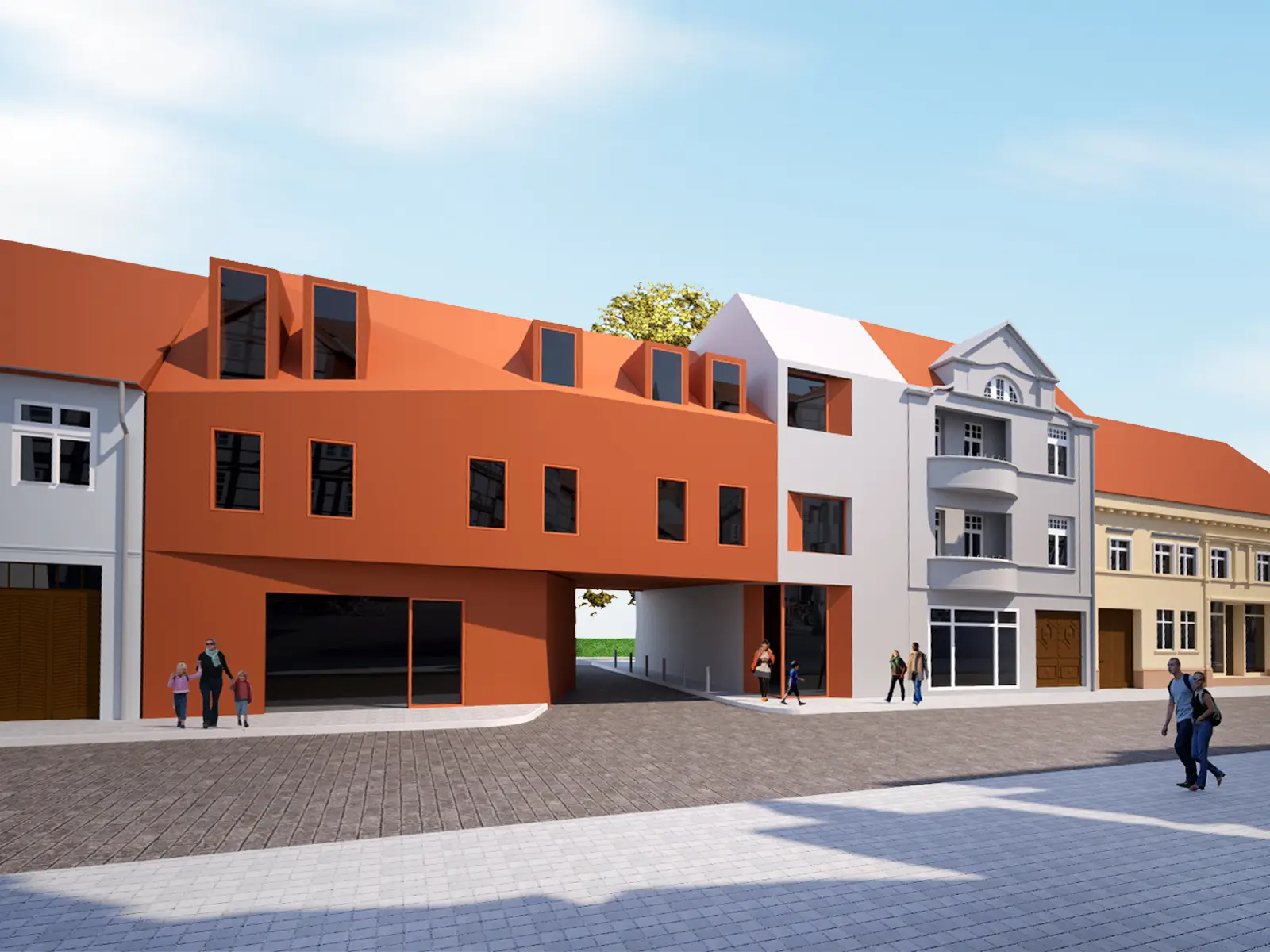 Bei der architektonischen Lösung für die Lückenschließung wird sowohl der bestehende Stadtgrundriss beachtet, als auch die Architektursprache der umgebenden Bebauung. Im Sinn einer Fortschreibung von Stadtgeschichte und damit auch Stadtbild erfolgt jedoch eine zeitgemäße Interpretation dieser Prinzipien.