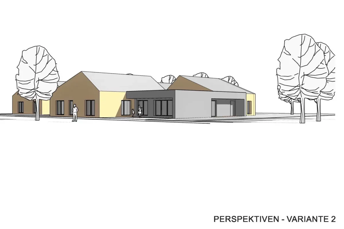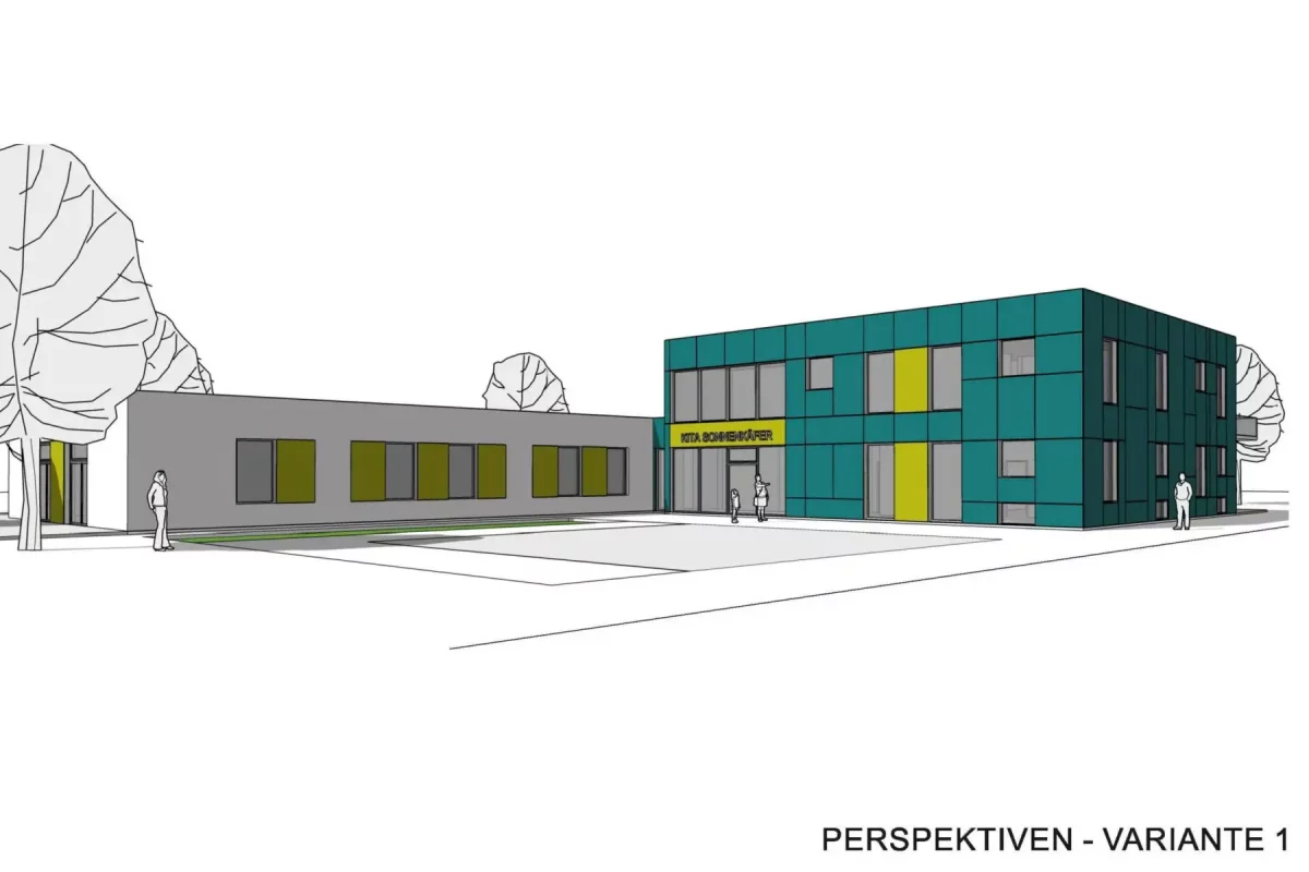 Im Ergebnis der Machbarkeitsstudie hat sich herausgestellt, dass ein Verbleiben der Kita am Standort sinnvoll ist. In der baulichen Umsetzung hat sich eine Kombination von Umbau und Neubau als architektonisch, funktionell und wirtschaftlich sinnvollste Variante herausgestellt.