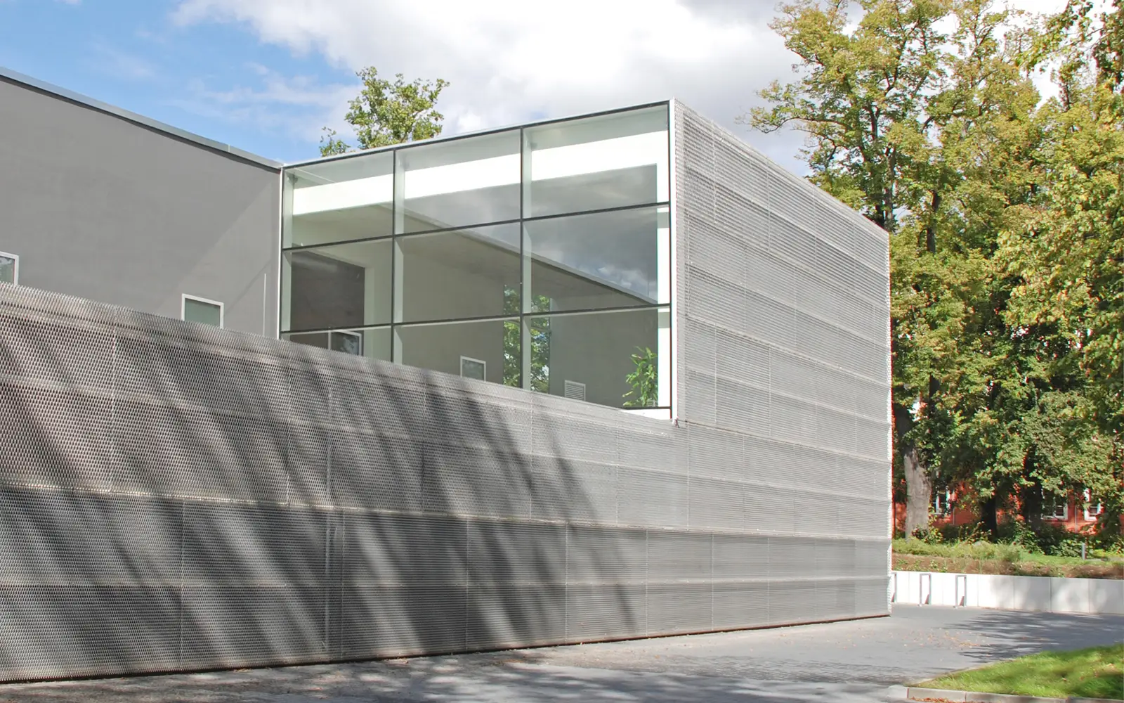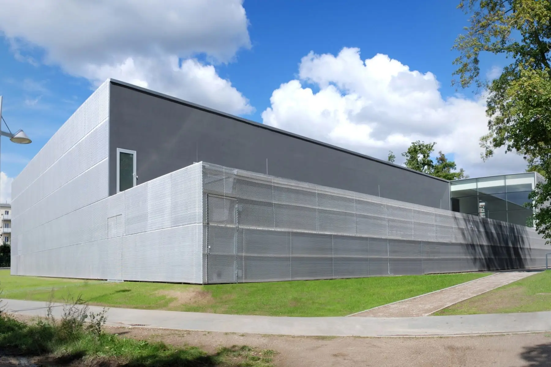 Aufgabe war die Planung einer Dreifeldsporthalle als freistehenden Baukörper, zur Arrondierung eines städtebaulichen „Unortes“. Schwerpunkt war dabei die Formulierung eines optisch unterschiedlichen erlebbaren Gebäudes, durch eine geschlossene, differenziert gestaltete Streckmetallhülle an der stark befahrenen Straße und Bahnstrecke, an der Reiferbahn.
