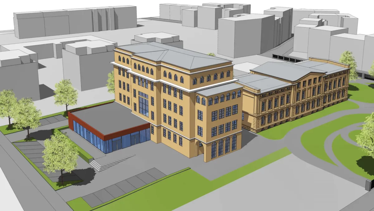 Die Bauarbeiten wurden im Februar 2013 begonnen. Die Rohbauarbeiten wurden im Sommer 2014 abgeschlossen. Bei den Ausbauarbeiten wurde auf die Umsetzung des historischen Farbkonzepts aus dem Jahr 1930 Wert gelegt, welches insbesondere dem Treppenhaus im Hamann-Bau eine besondere Wirkung verleiht.